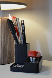 Elegancka forma i precyzyjnie zaprojektowane przegrody pozwalają utrzymać porządek w stylu premium — od długopisów, przez spinacze, po zszywacz i inne drobne akcesoria.